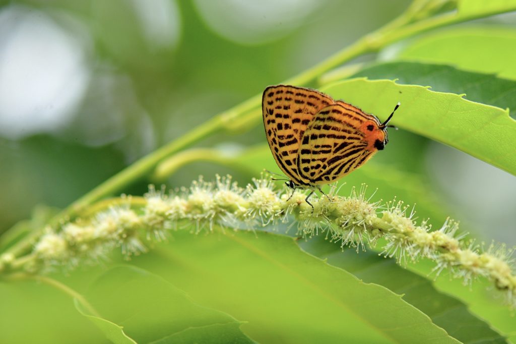 雄花が咲いた後に雌花が開花し、他のクリの花粉をつけた虫が、花粉と蜜をつけた雄花に来るのを待っています。